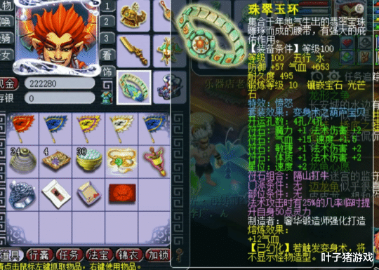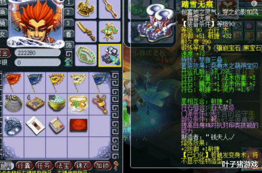 鞋子位置为90级琴音、葫芦宝贝,镶嵌了9锻黑宝石,法系必备特技之一。