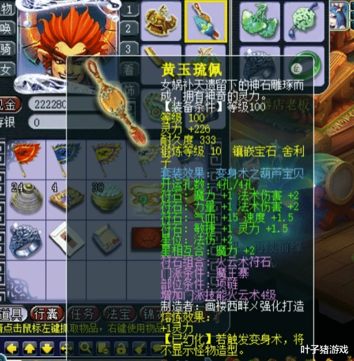 腰带位置为100级愤怒、葫芦宝贝,镶嵌了10锻光芒石,算是高端PK玩家必备。