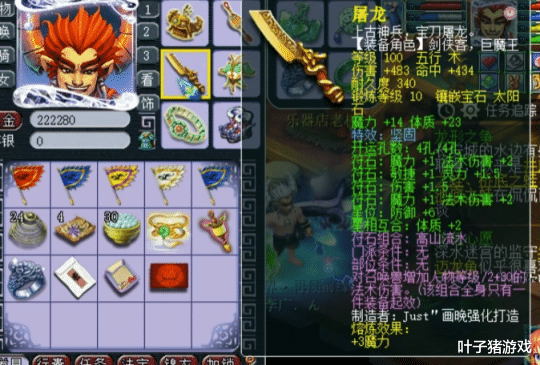 武器部分为100级483伤,体魔双加40的坚固,镶嵌了10锻太阳石。
