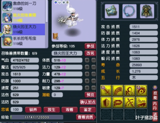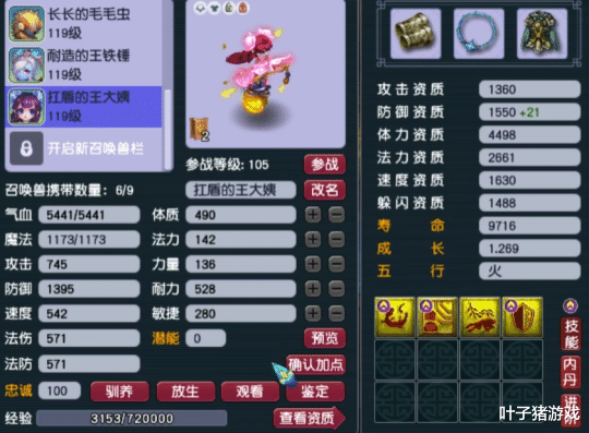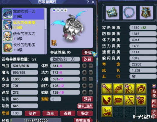 第一只召唤兽为9技能血攻高连,平时杀天地、打难度毫无压力。