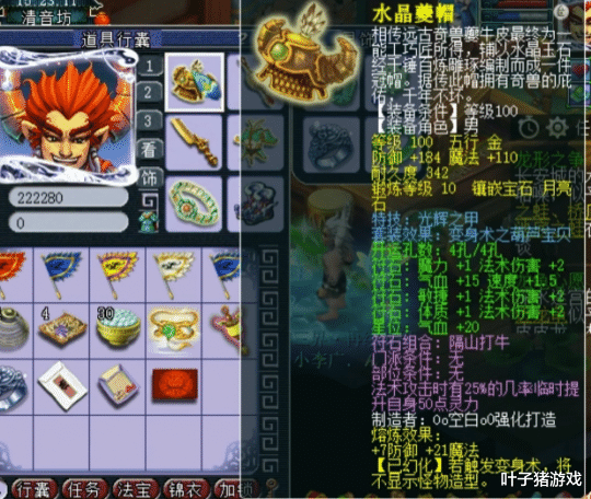 头盔部分为100级光辉、葫芦宝贝,镶嵌了10锻月亮石,PK、天地、任务都能用。